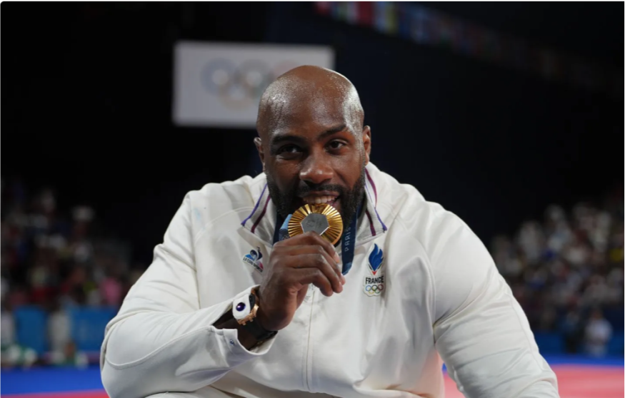 A domicile en 2024 pour les J.O de Paris le mastodonte judokas, rencontre le géorgien Guram Tushishvili en quart de finale qui le pousse dans ses retranchements, mais Riner s'impose finalement, en battant ce dernier et avant d'aller glanner l'or devant son public face au Sud-coréen Kim Minjong. Il remporte également la médaille d'or par équipe le 03 Août, après un combat de 12 minutes face au japonais Tatsuro Saito, et devient ainsi le premier judokas de l'histoire à remporter cinq médailles d'or olympiques.