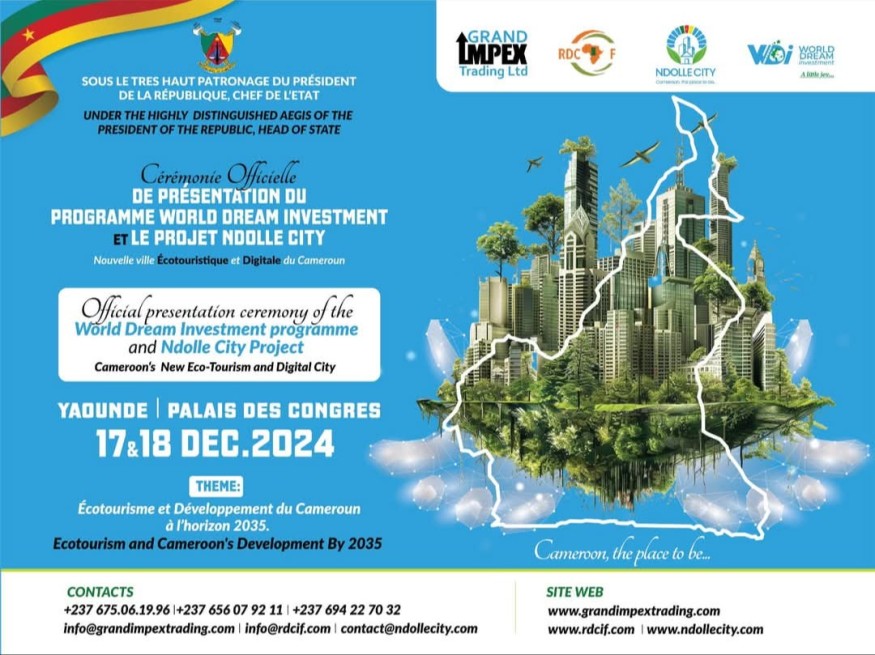 Yaoundé,la capitale du Cameroun, accueille ces 17 et 18 décembre 2024, le lancement d'un projet d'envergure pour le développement du Cameroun. Impex Trading SARL,sous la houlette de son Directeur Général, va procèder au lancement officiel du programme d'investissement "World Dream Investment" et de son projet phare, Ndollè City dans phase 1 reliant le tronçon Sikoum-Dibamba. Cet événement placé sous le haut patronage du Président de la République, va se tienir au Palais des Congrès de Yaoundé.